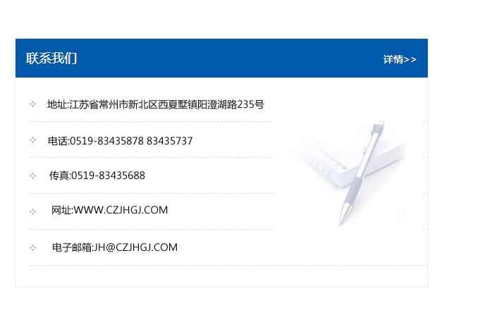傳真:0519-83435688    郵編:213135    網址:WWW.czjhgj_com.520lz.com    電子郵箱:JH@czjhgj_com.520lz.com